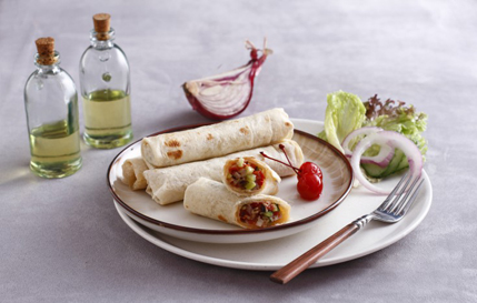 肉末鮮蔬卷餅的做法: 洋蔥、黃瓜、番茄和香菇分別切碎備用。 鍋中熱油,炒香洋蔥碎,加黃瓜、番茄、香菇碎和肉末及鹽和黑胡椒粉稍加翻炒。 將炒好的餡料放在卷餅皮上,卷好。 在烤機內壁用刷油桿刷一層油,放入卷好的肉末鮮蔬卷餅,插上電源烤熟即可。